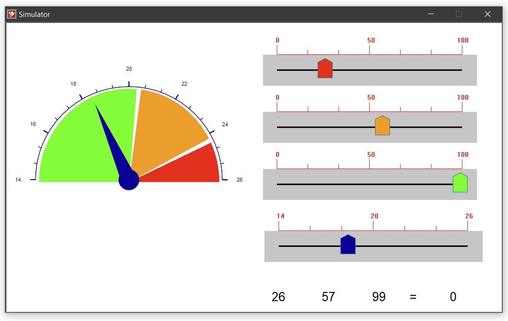 Deze tutorial legt uit hoe u een halfronde meter (stijl snelheidsmeter) kunt bouwen met een configureerbaar aantal gekleurde secties, bestuurd door schuifregelaars, en een naald die in real time wordt bijgewerkt.